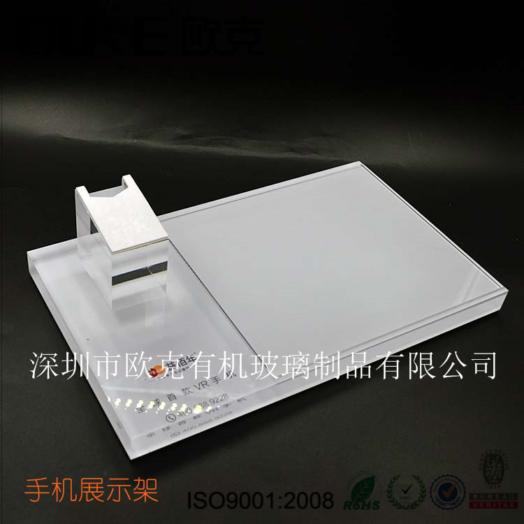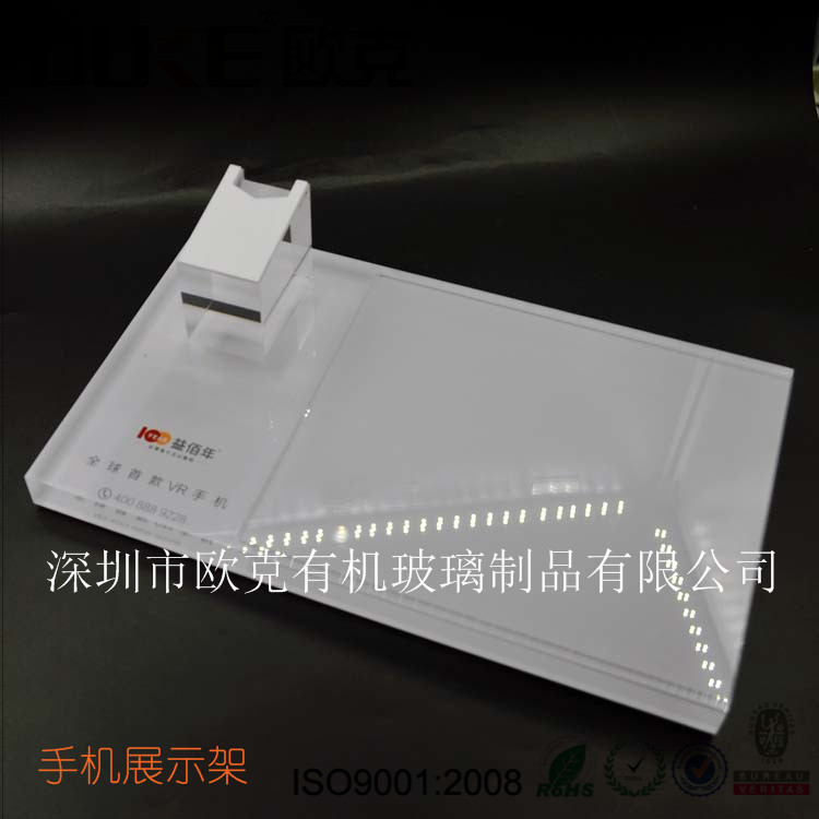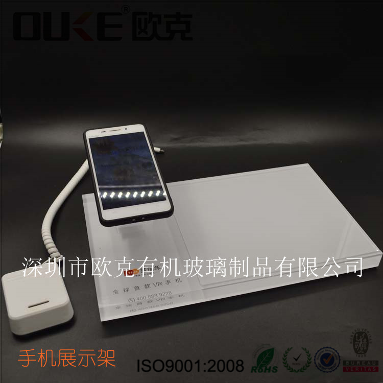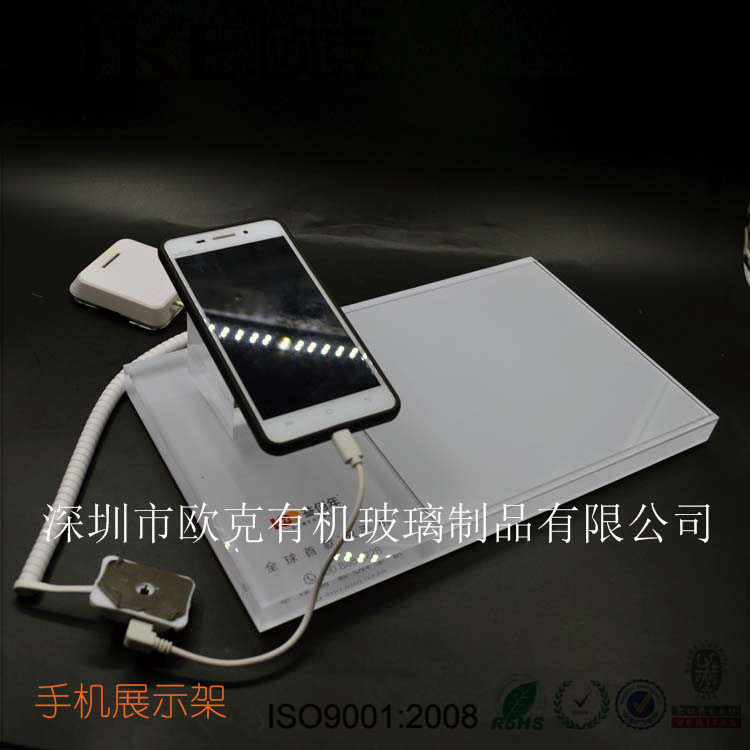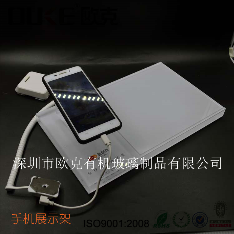此款亞克力手機展示架,以白色為主,LOGO可定制,高強度的防滑墊,打破手下往下滑落的優(yōu)點,尺寸大小更適合大型一點的手機,體現(xiàn)手機的完美度,可放手機宣傳插頁,方便取拿。