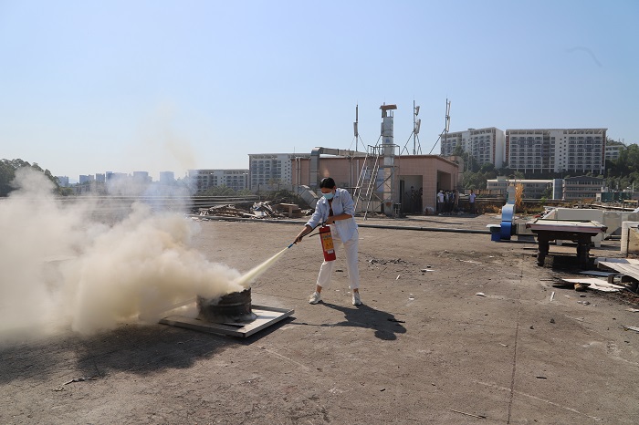 此次消防演練,分為兩部分的演練,一部分是粉狀滅火器的演練,另一部分是消防水管的演練,不同的滅火器材,有不用的使用方法,干粉滅火器使用前需要把安全扣拉開(kāi)和拔出來(lái),擠壓才會(huì)噴出干粉,然后把噴頭火苗噴就可以。而用水滅火,則需要對(duì)接水管,把水管捋直,打開(kāi)水閥門(mén),才能正常出水滅火。