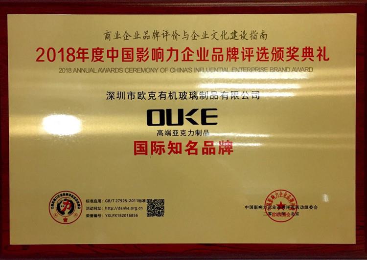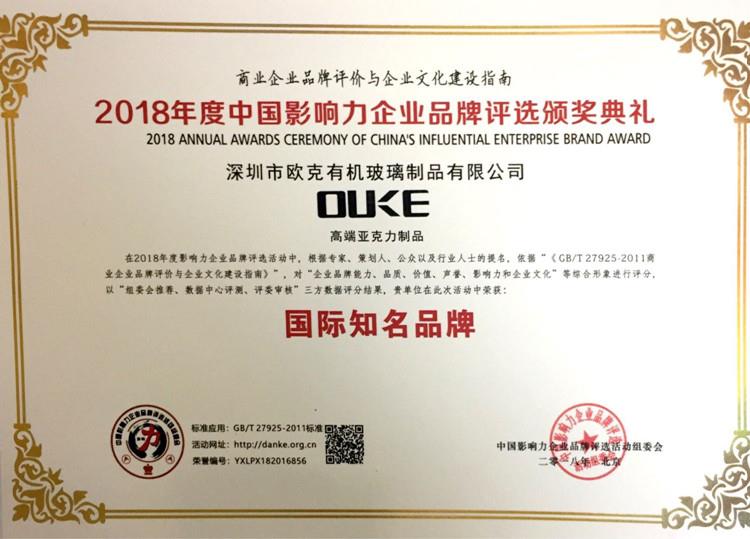 熱烈祝賀歐克榮獲2018年度“國際知名品牌”稱號