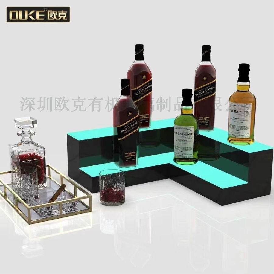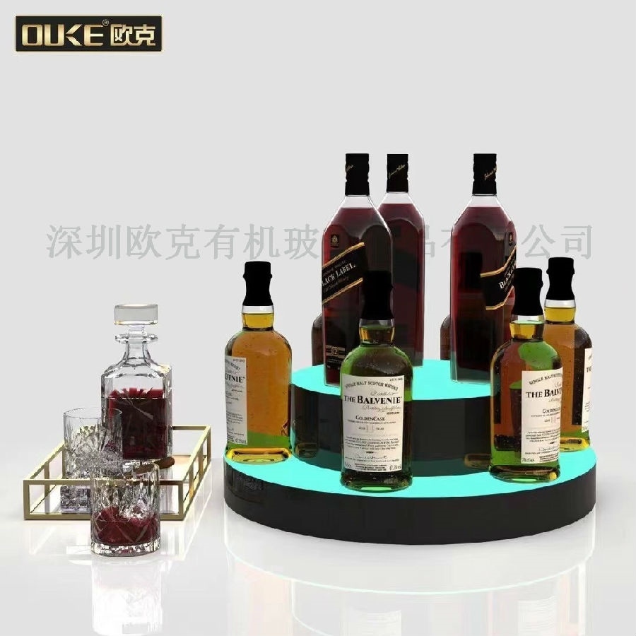 通過與客戶多次的合作,客戶新產品開發(fā)過程中的全力配合,亞克力發(fā)光酒架從之前的階梯形單一款式到現在累計開發(fā)出圓形,L形等數款市場熱銷款;亞克力酒架款式的多樣性,配合定制的LED燈板,從以前的單一燈光逐漸向現在的APP燈光控制,亞克力酒架的逐步智能化,科技化也成為了產品市場競爭的關鍵性因素。